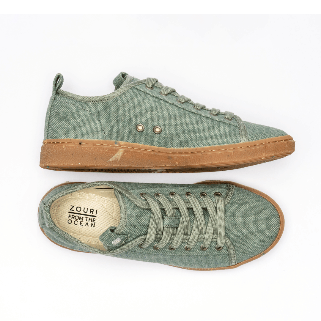 Designed in Portugal with natural and organic raw materials like a natural linen upper, organic cotton lining and rubber with plastic from the Ocean Sole.